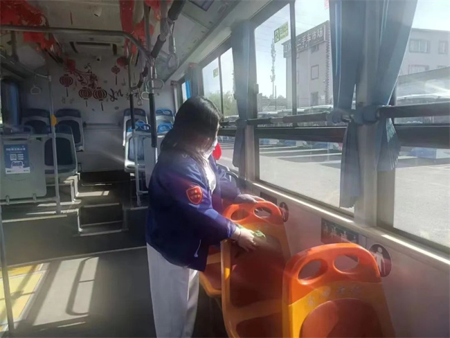 鐵西新區(qū)一線駕駛員趙儐、228路駕駛員劉冰,在“五一”小長假期間每天都會(huì)早早來到車隊(duì),按照疫情防控要求對車輛進(jìn)行打掃消毒,做好出車前準(zhǔn)備,以飽滿的熱情投入到工作之中。
