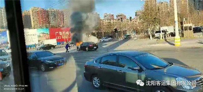 路遇私家車(chē)自燃,就在周?chē)梭@慌失措時(shí),路過(guò)的渾河雷鋒號(hào)公交車(chē)駕駛員挺身而出,抱著滅火器充當(dāng)了一次“消防員”。