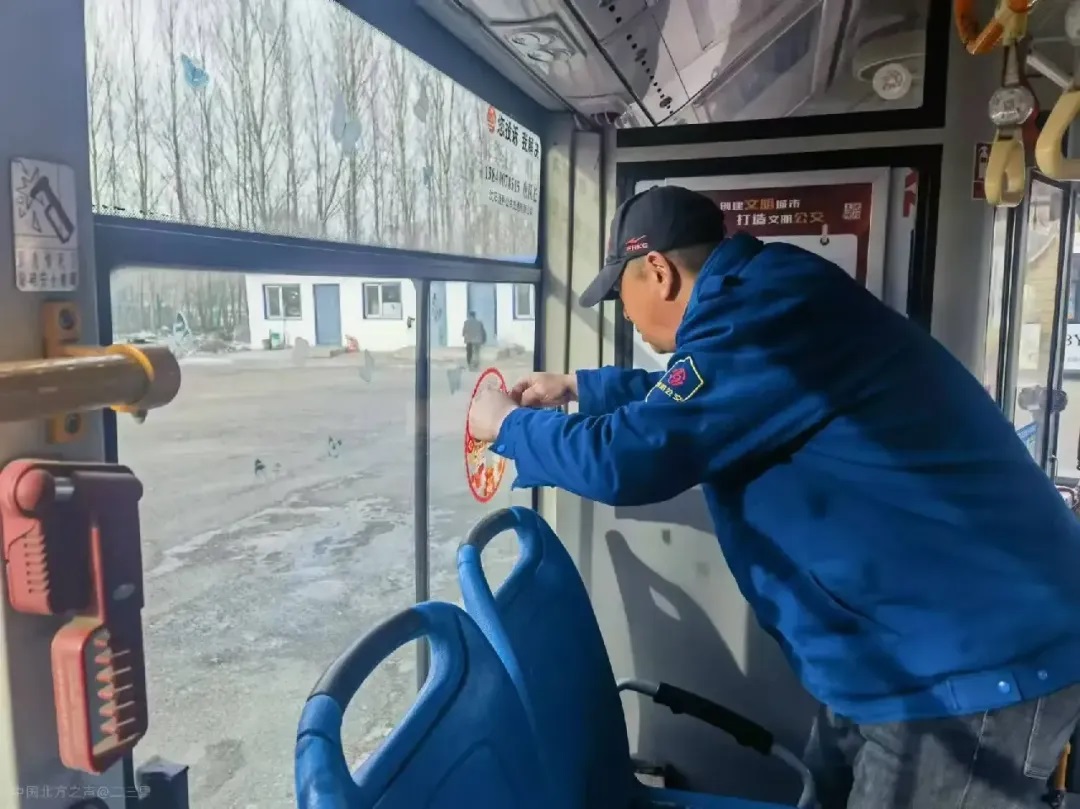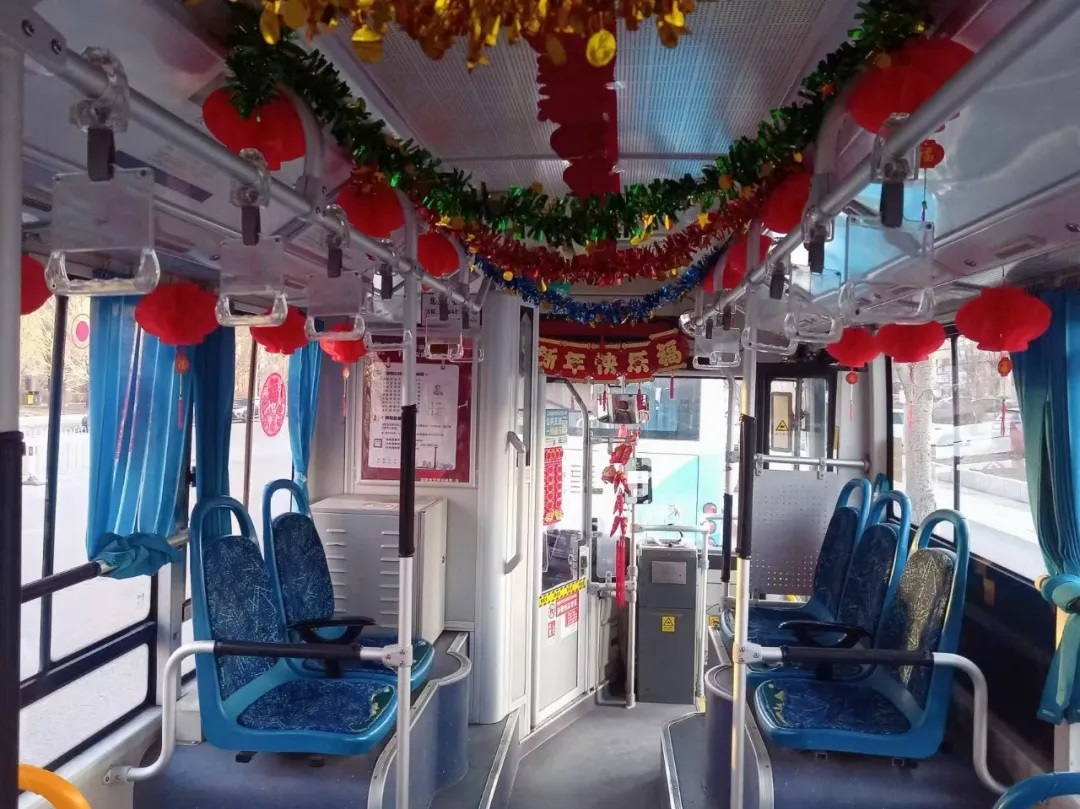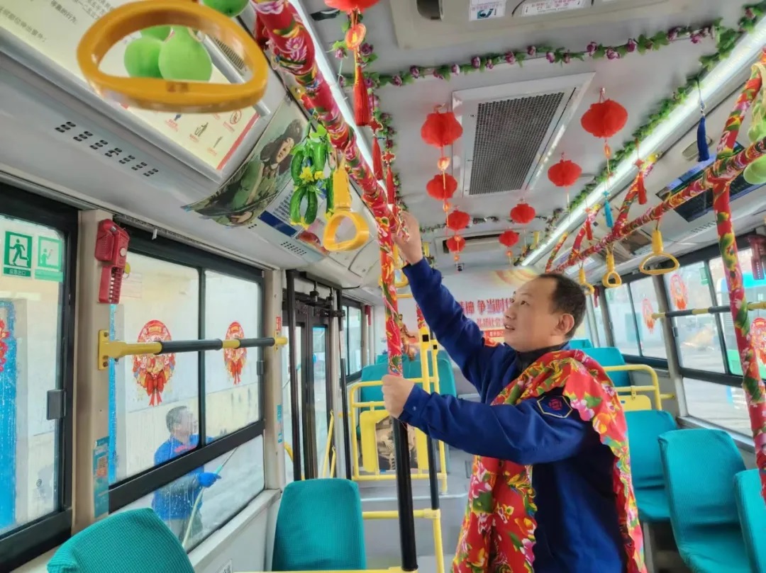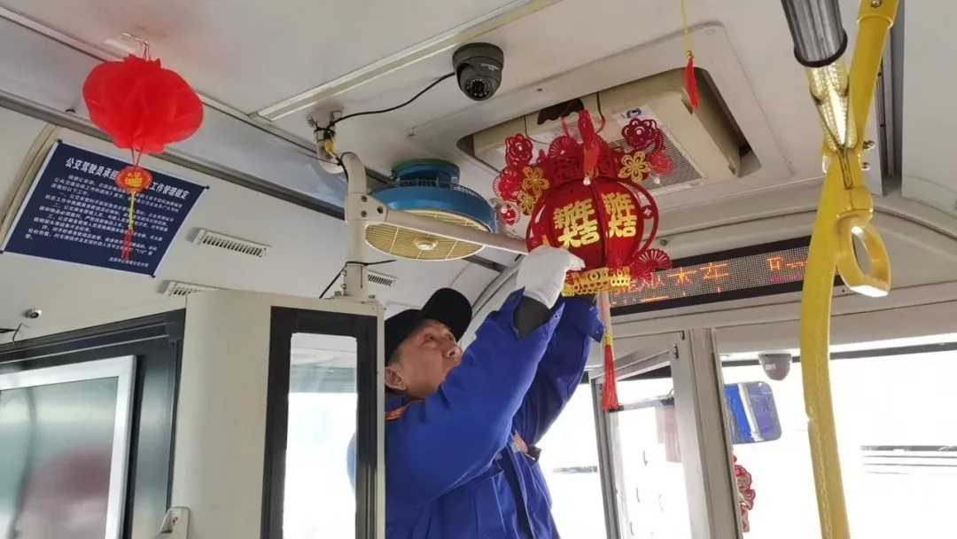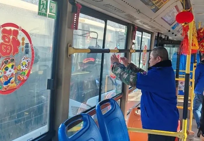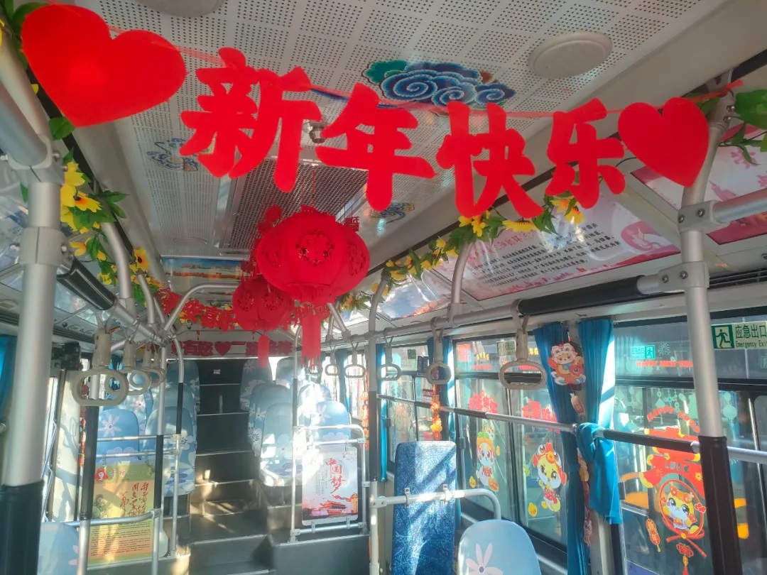 據(jù)了解,元旦前夕,沈陽客運(yùn)集團(tuán)按照全市“我是雷鋒”——沈陽市窗口行業(yè)文明誠信服務(wù)寵客(qiě)行動(dòng)工作安排,落實(shí)全市“雙節(jié)”節(jié)日氛圍布置工作要求,積極開展“布置車廂,扮靚沈陽”行動(dòng),各車隊(duì)利用行車間歇和休息時(shí)間裝扮車輛,懸掛新年拉花、紅燈籠,張貼新年窗花及融入“蛇年”元素的貼紙等。目前,已有1188臺(tái)途經(jīng)主要街路、景區(qū)、商業(yè)街區(qū)的公交車輛完成了裝飾,車內(nèi)年味十足,客運(yùn)集團(tuán)計(jì)劃在春節(jié)之前完成全部運(yùn)營車輛的裝飾布置工作。