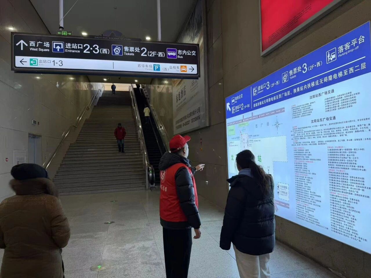 這群來自沈陽客運集團的志愿者,仿佛練就了一雙“火眼金睛”——他們總能第一時間發(fā)現(xiàn)拖著沉重行李的游客,或是在閘機口面露難色的老人。統(tǒng)一的紅色馬甲,讓他們在茫茫人海中成為最醒目的坐標。從地鐵換乘到公交線路,從周邊路況到沈陽旅游攻略,他們不僅是“指路人”,更是這座城市遞給外來客的第一張“笑臉名片”。