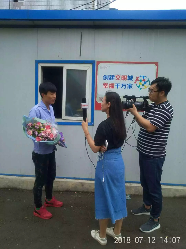 次日,老人家屬請(qǐng)來(lái)了直播生活的記者一同來(lái)到車隊(duì),對(duì)駕駛員張魏魏進(jìn)行電視報(bào)道采訪,并送上鮮花以表謝意。